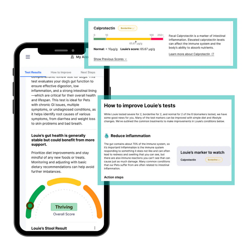 70% of the immune system is in the gut, so your pet’s gut health has a significant impact on their overall well-being. Our tests measure inflammation, immune response, and leaky gut so we can better identify and provide guided recommendations for common conditions your pet may be facing.